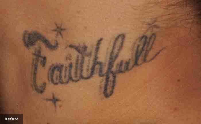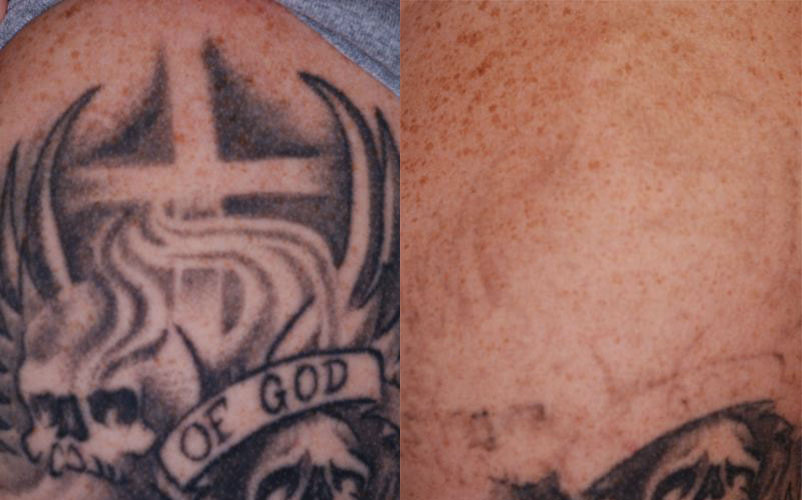 Son principe de traitement : : le traitement de choix sera le LASER PICO  qui va émettre un rayonnement très bref qui sera absorbé spécifiquement par le pigment du tatouage. Le pigment va ainsi être pulvérisé en de multiples particules fines qui seront ensuite éliminées par le corps et l’action des macrophages. En fait temps d’impulsion très court de l’ordre de la nano voir de la picoseconde seconde permettent un éclatement de la cible par effet photomécanique donc très peu de libération thermique ce qui évite les dommages des tissus environnant.